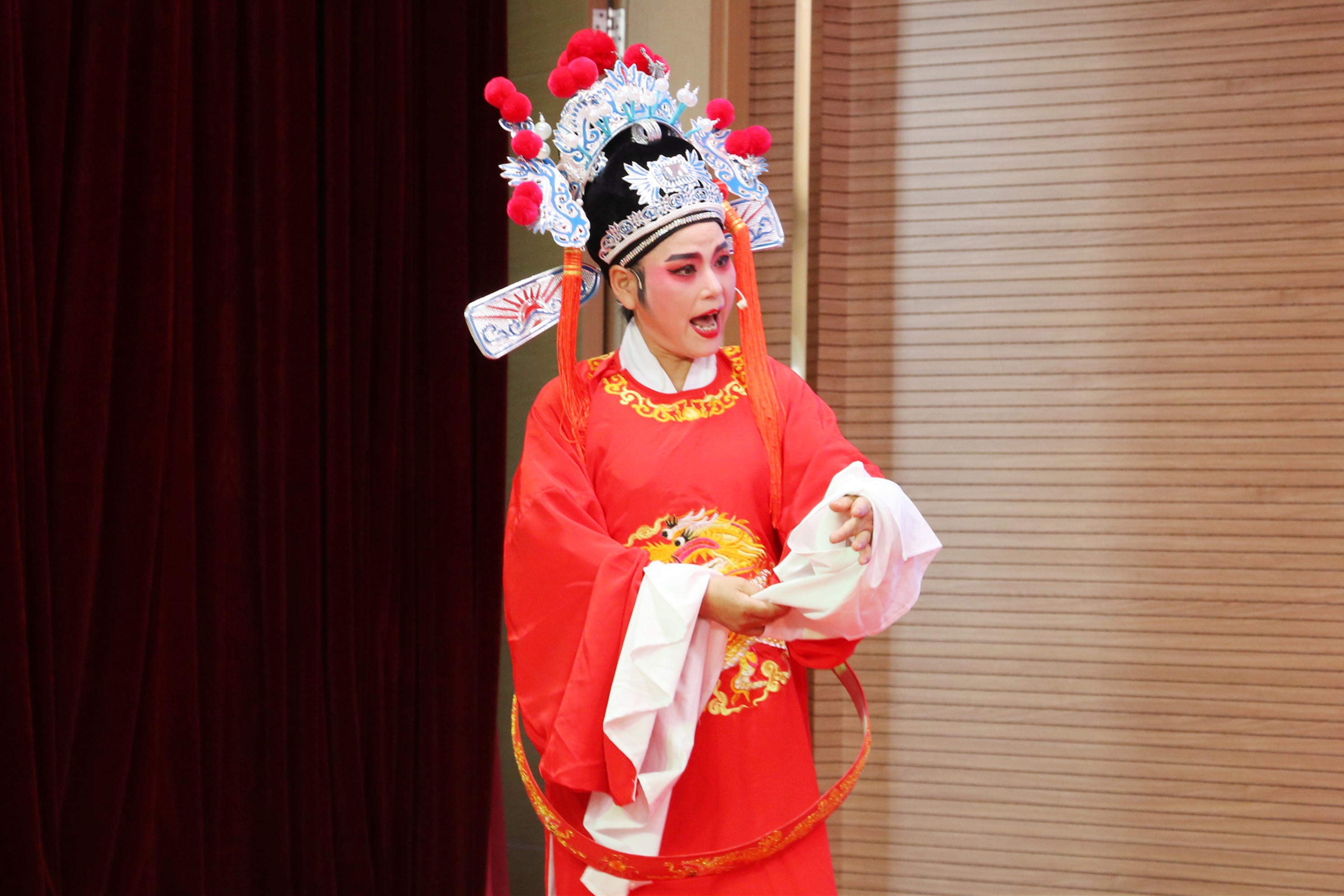 此次活动以越剧折子戏为主,《山河恋—送信》、《何文秀—心连心》、《打金枝—闯宫》等曲目,都是长者们熟知并喜爱的戏曲。正所谓台上一分钟、台下十年功,演出者们的一举一动、一颦一笑,带给长者们的是极致的视觉享受,这非常考验演员们的舞台功底。整场演出更是精彩万分,赢得了长者们的阵阵掌声,在此,中心非常感谢倾情演出的表演者们,谢谢你们为长者们带来精神上的欢愉,让大家一同为祖国的繁荣盛世而欢呼庆贺。
