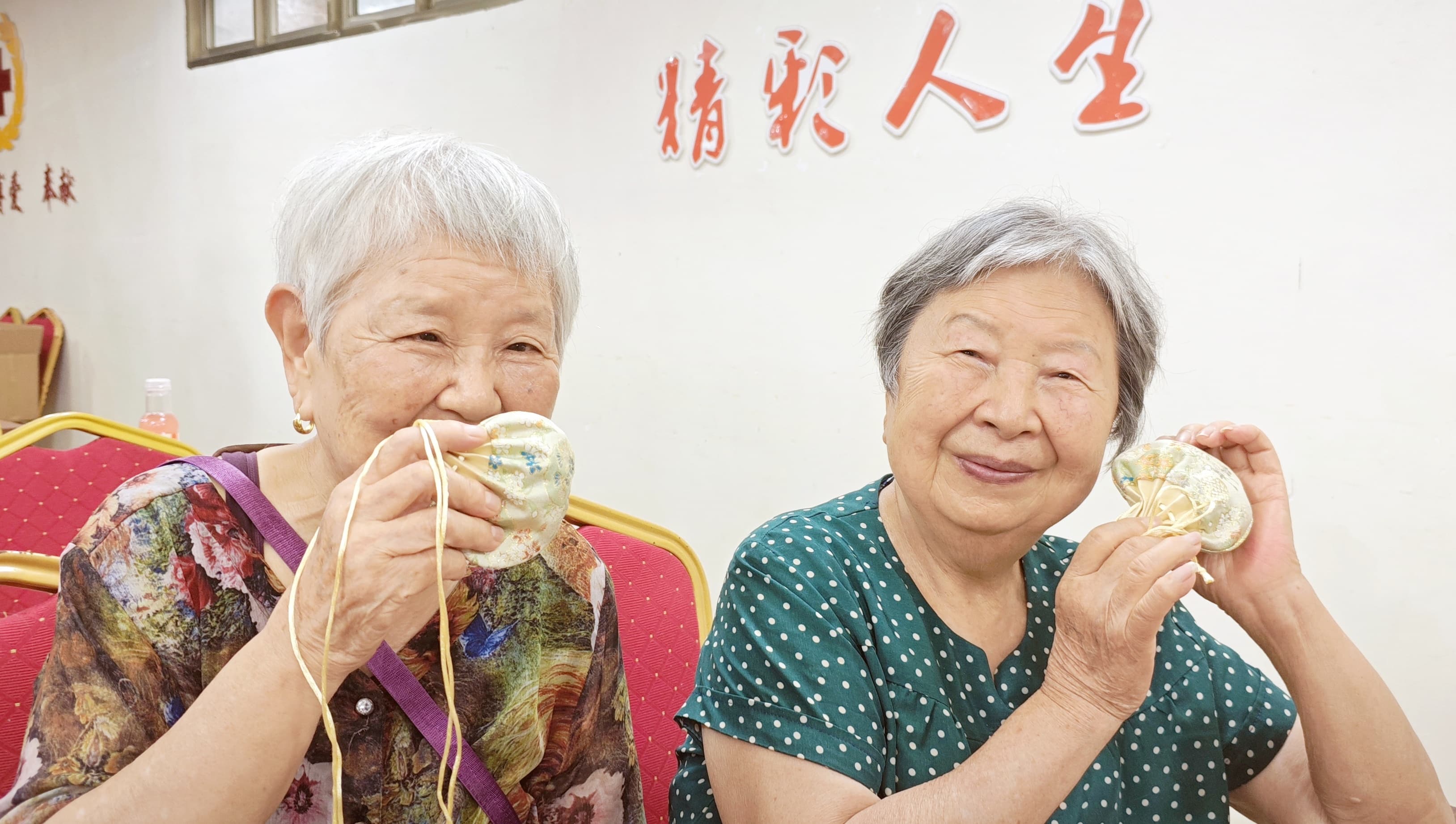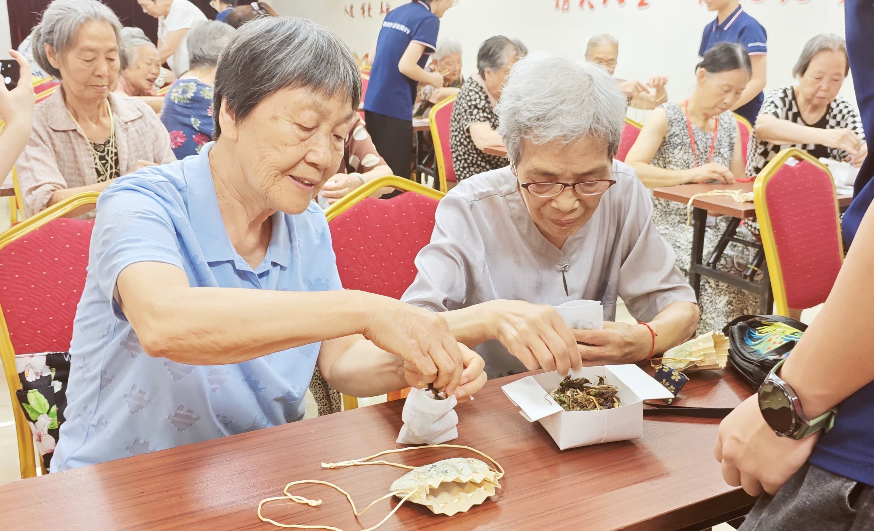 “芳艾传情·巧手锦囊”香囊制作活动中,志愿者详细介绍了艾草的驱蚊和安神功效,并播放老照片,重温端午节的习俗,活动还特别邀请长者分享他们“记忆中的草药味道”。随后,通过“装、系、饰”三步简化教学法,志愿者指导长者们亲手制作艾草香囊。
