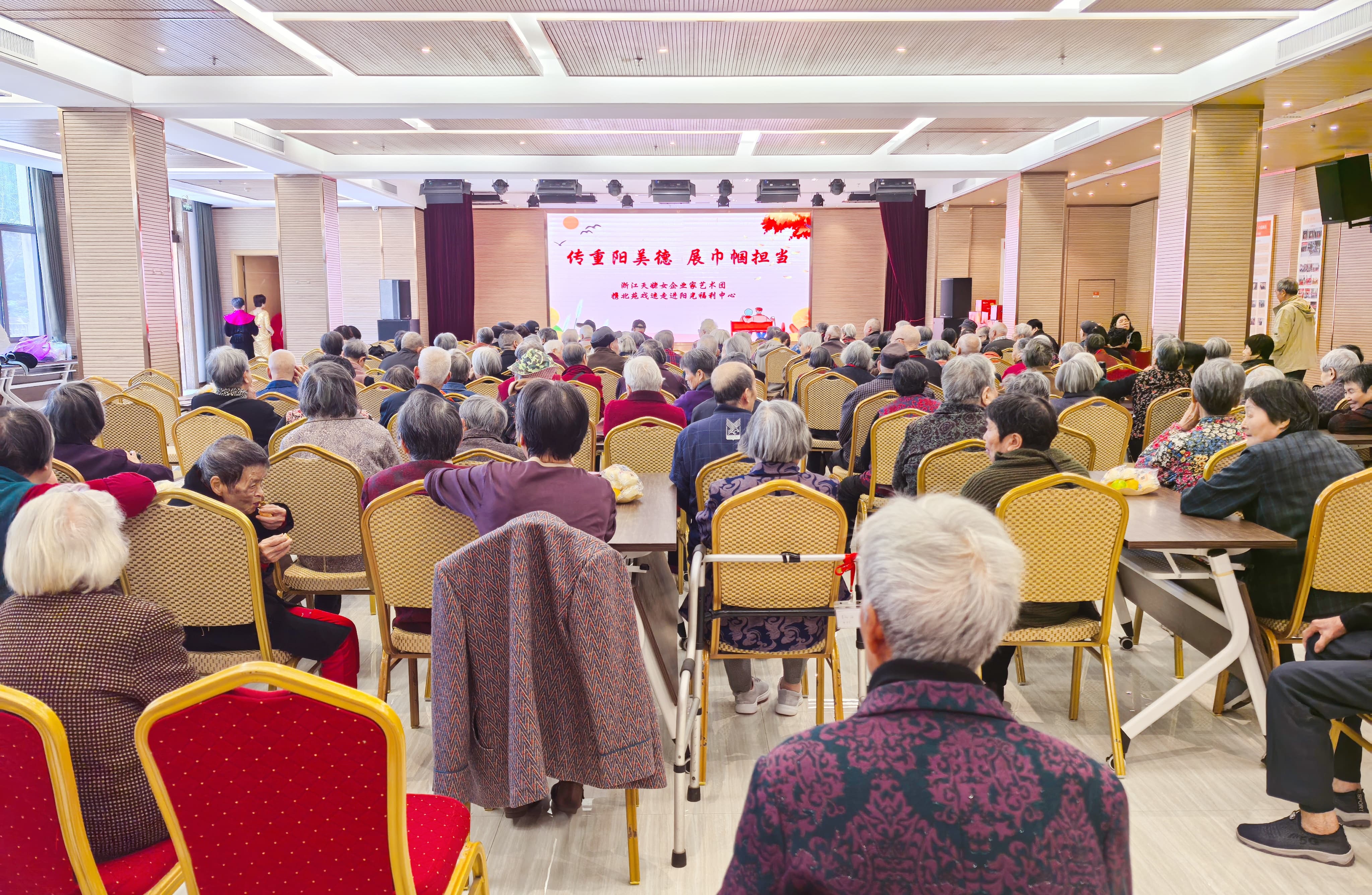 金秋送爽,重阳情浓。10月29日,重阳节之际,浙江天姥女企业家艺术团携北苑戏迷俱乐部走进阳光福利中心,开展“传重阳美德·展巾帼担当”慰问演出活动,以文艺为纽带,为中心长者编织了一场温馨的节日盛宴。