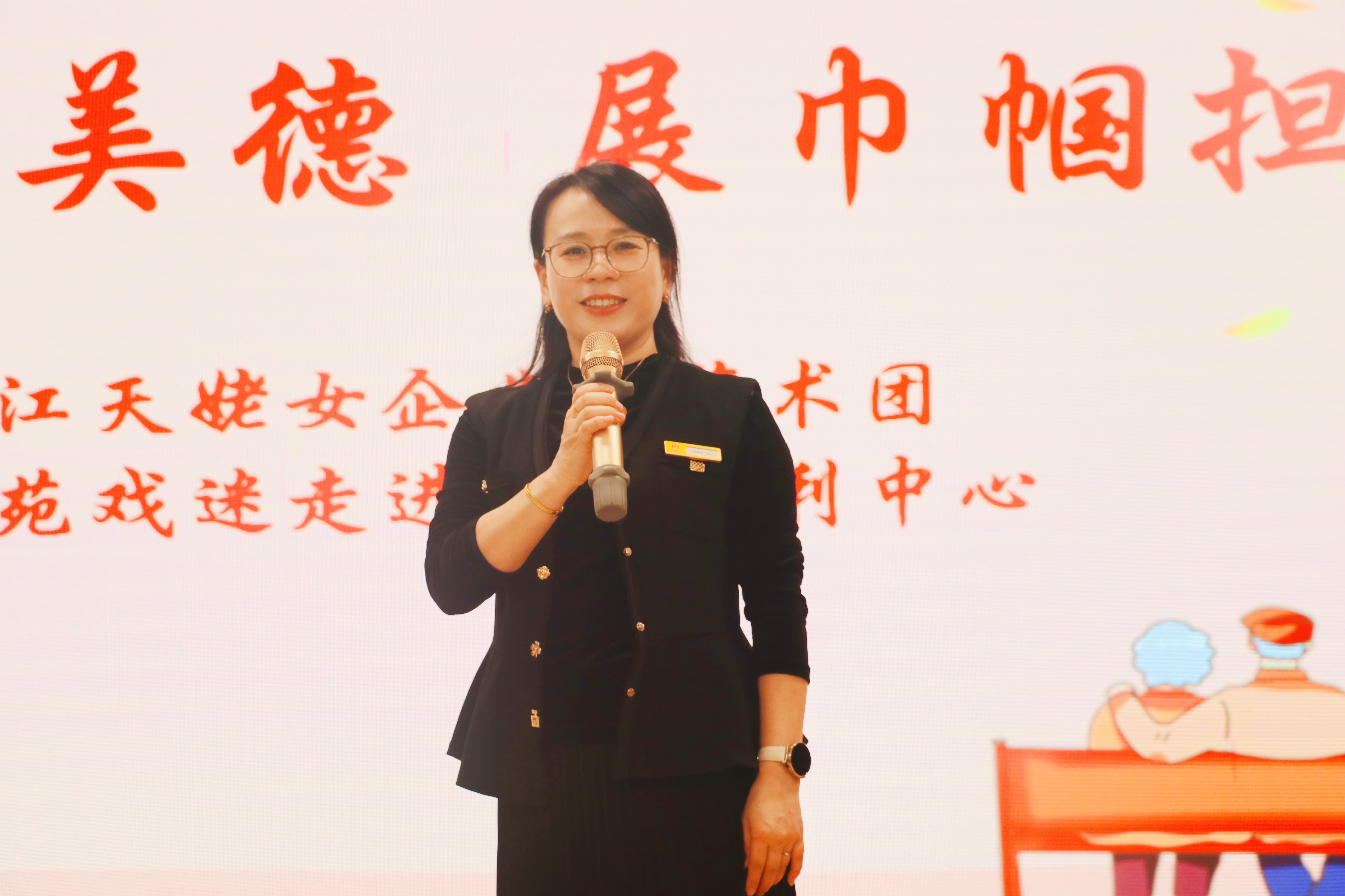 活动当日,中心内洋溢着温馨的氛围,首先,由中心院长徐海瑛发表致辞,她对浙江天姥女企业家艺术团及北苑戏迷俱乐部老师们的到来表达了诚挚的感谢。带着浓厚的节日祝福,她祝愿所有长者身体健康、笑口常开,同时也祝福各位来宾朋友生活安康、事业蒸蒸日上。她表示,在这个充满温情的重阳节,大家带着关怀与爱心为长者们送上欢乐与温暖,这不仅彰显了社会各界对老年群体的深切关爱和重视,更让长者们深切感受到来自社会的尊重与关怀。