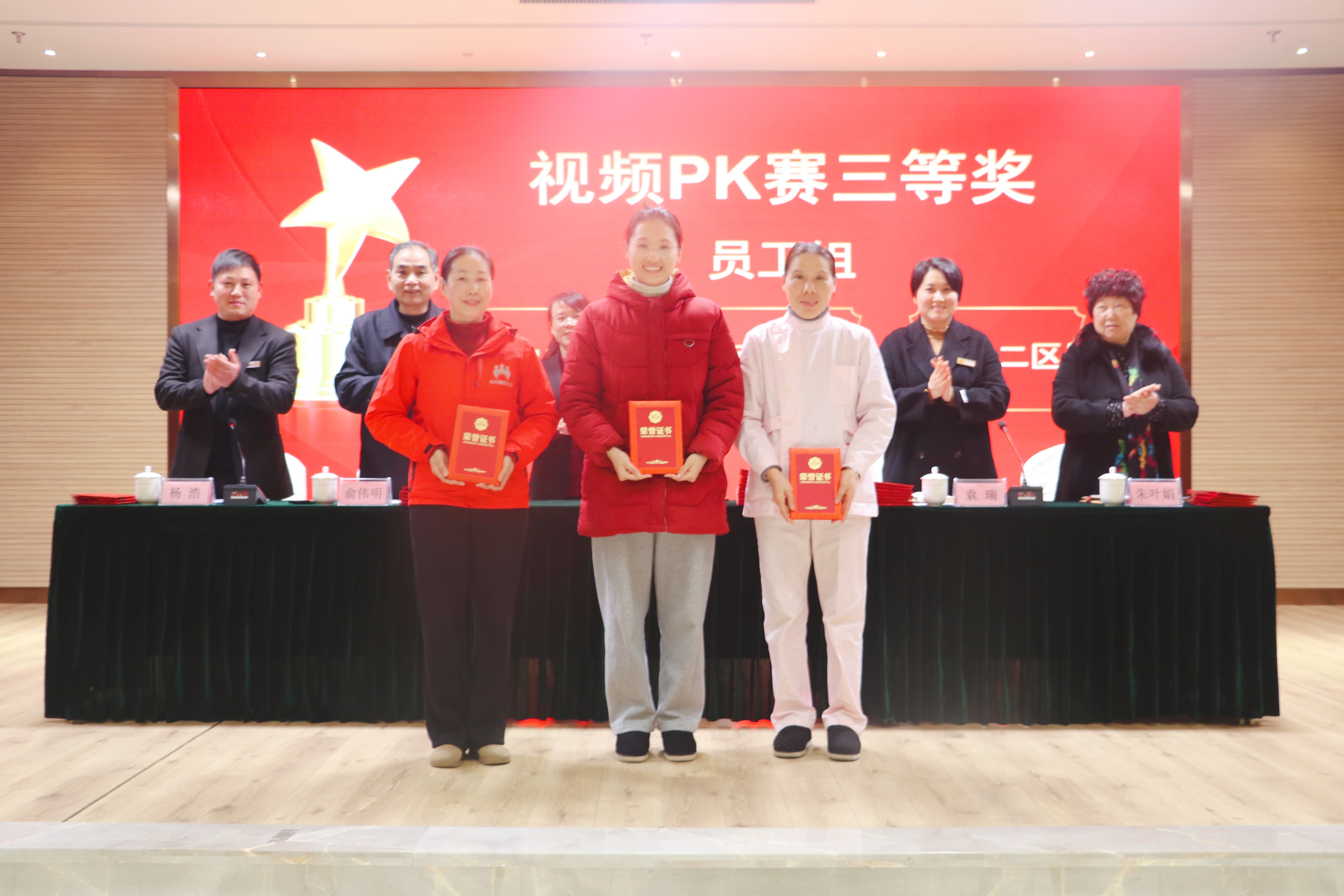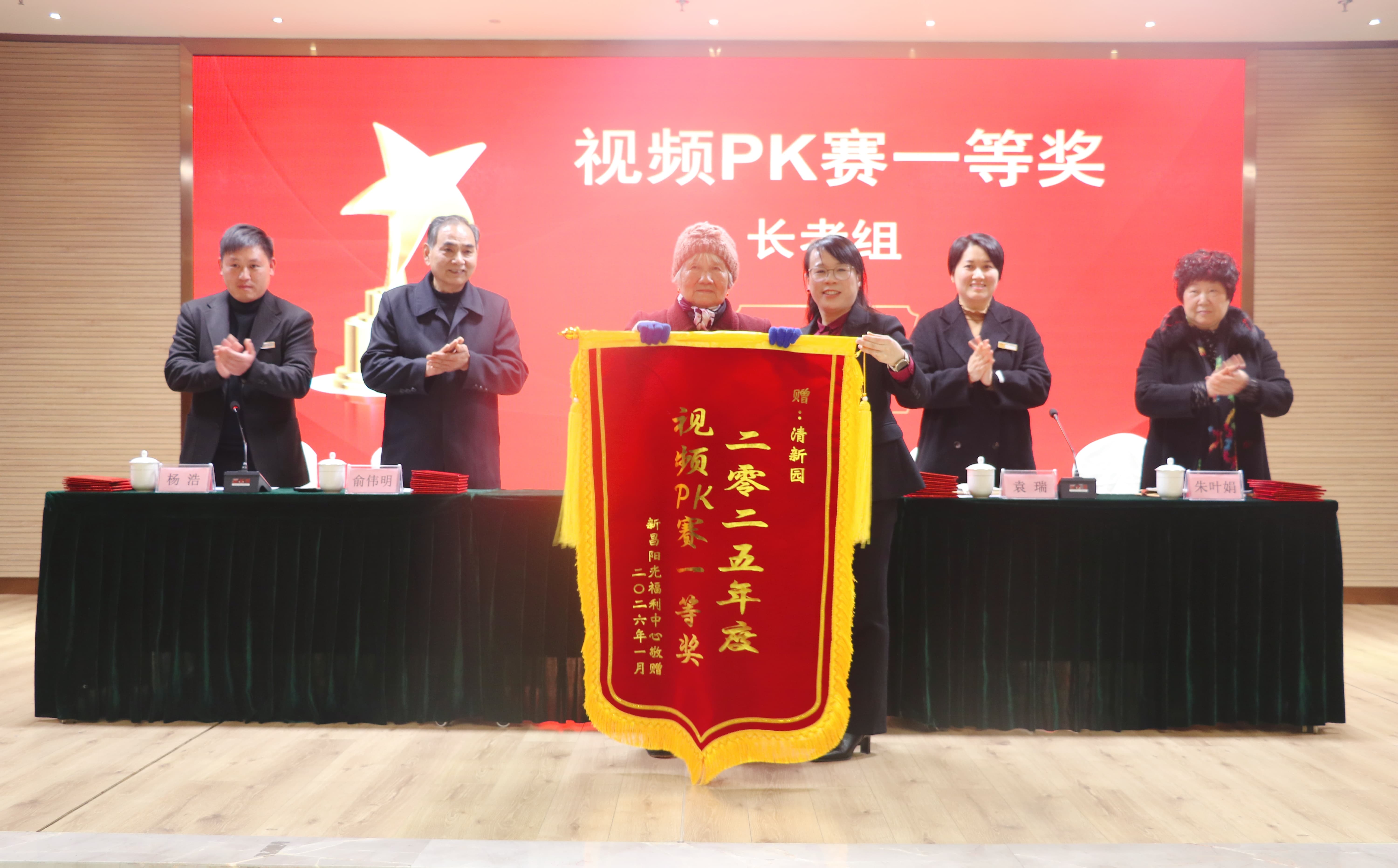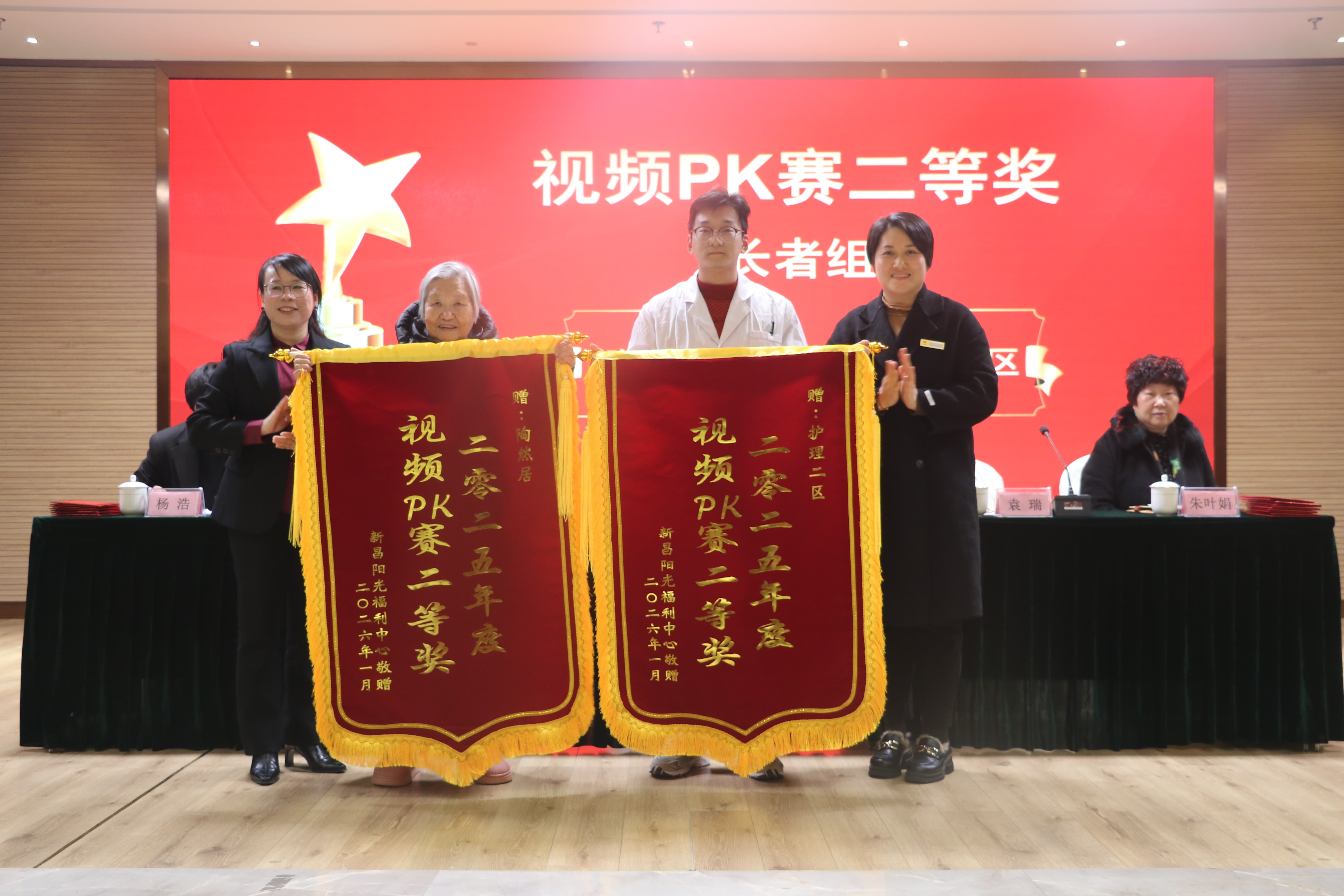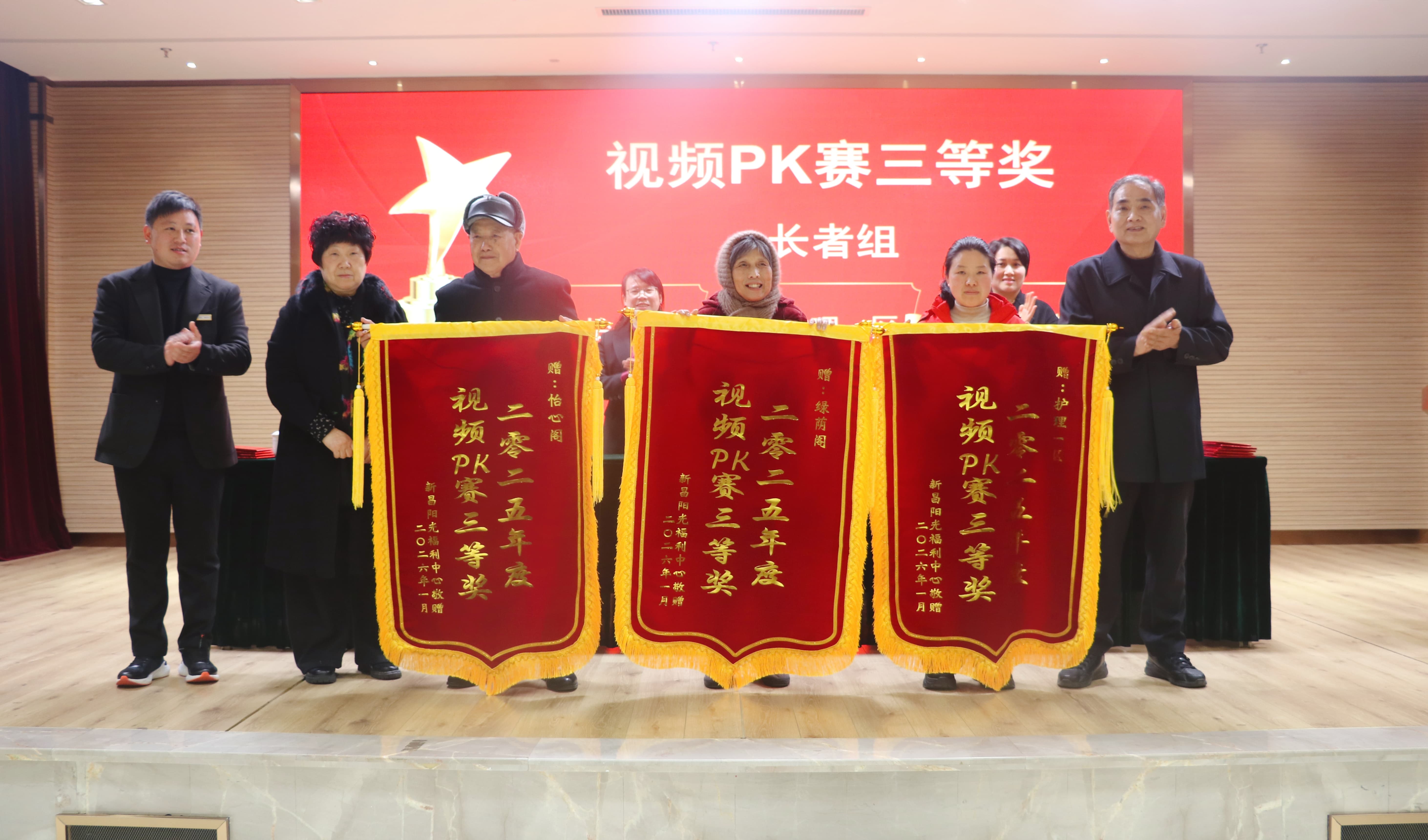 随后,大会依次对2025年度视频PK赛获奖集体、养老护理员技能竞赛获奖人员以及年度优秀干部、优秀员工进行了表彰。曾参与视频拍摄的长者代表上台领奖,中心颁发的锦旗,不仅是对长者们热情创作视频的鼓励,更是对他们给予中心支持的由衷感谢。年度员工表彰,每一份荣誉,都是对员工辛勤付出的认可,更是对所有阳光人未来奋勇前行的鼓励与鞭策。