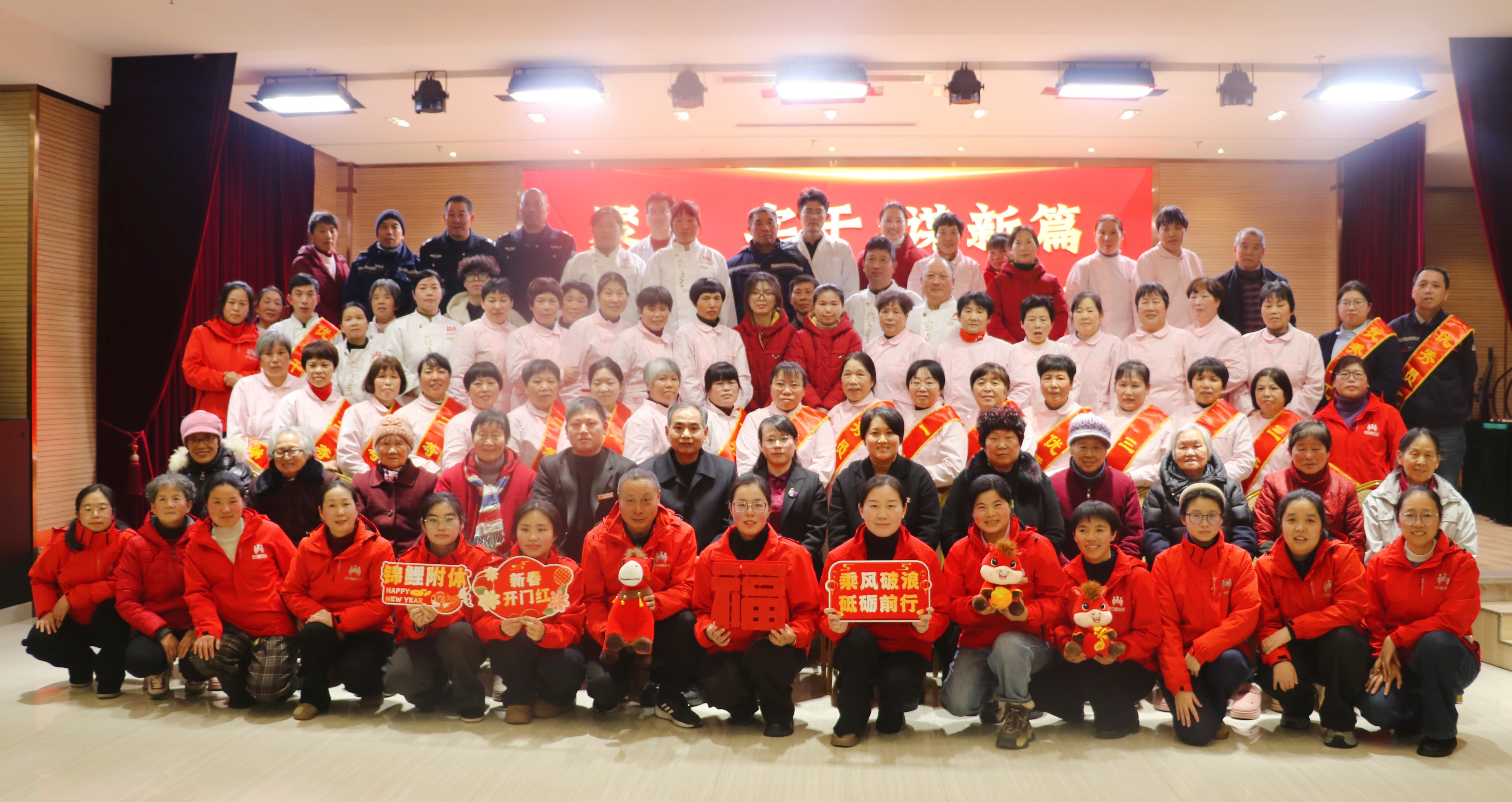 岁聿云暮,新元肇启。1月28日,阳光福利中心2025年度员工大会暨表彰大会在大礼堂隆重召开。中心院长徐海瑛,常务副院长袁瑞,副院长俞伟明、朱叶娟携全体员工(除值班人员)参加大会,大会由院长助理杨浩主持。大家齐聚一堂,回顾奋斗足迹,表彰年度先进,擘画发展新蓝图,并邀请了老年大学教师及长者代表共同见证这一重要时刻。